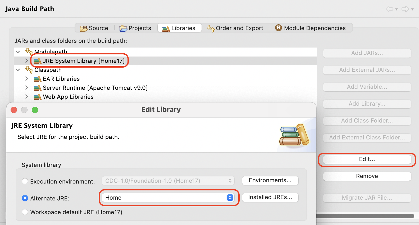 다음과 같이 Edit에서 Java Home을 선택해주면 됩니다.
