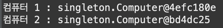 그 후 실행해보면 서로 다른 Computer 객체의 주소가 적용된 모습을 확인할 수 있습니다