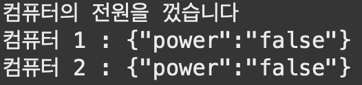 생성자에서 power에 true 값을 넣어줬기 때문에 두 컴퓨터 전부 전원이 켜져있는 상태입니다.