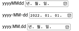 위에서 보이는 결과와 같이 "yyyy-MM-dd" 포맷으로 적용해야 value 값이 적용된다는 걸 확인할 수 있습니다.