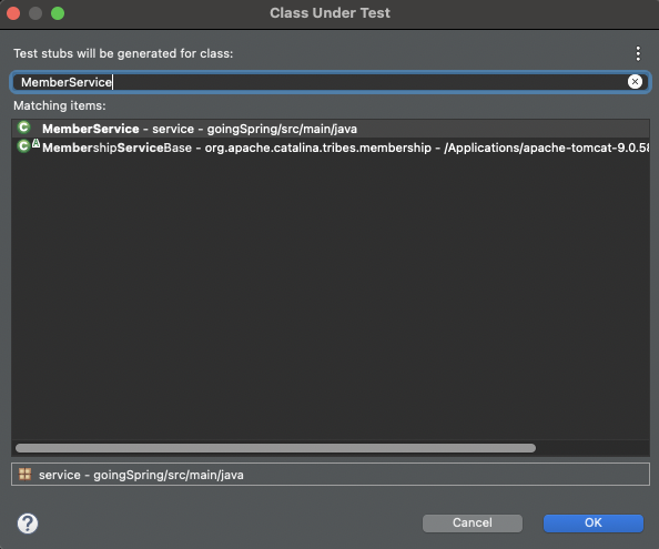 MemberService๋ฅผ ํ ์คํธ ํ๊ธฐ์ํด ์ ํํด์ฃผ๊ณ OK๋ฅผ ๋๋ฌ์ค๋๋ค.