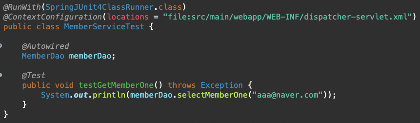 2) @ContextConfiguration(locations = "config file ์์น") :
