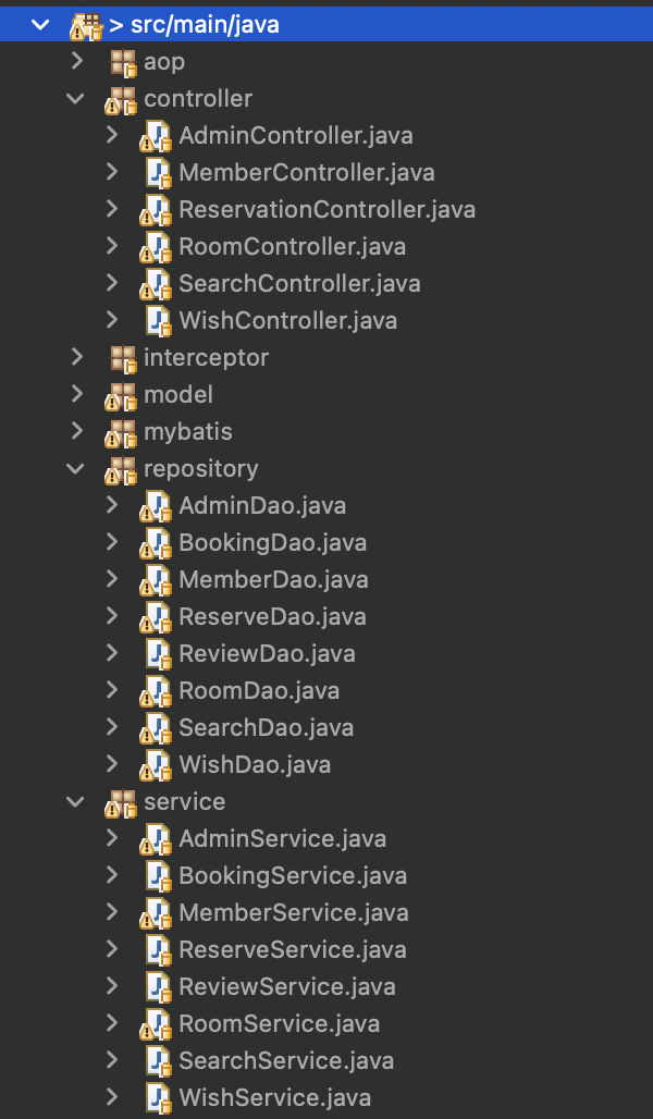 Service ํ์ผ์ ๋ณ๋๋ก ์์์ผ๋ฉฐ Controller์ Dao ํ์ผ๋ง ์กด์ฌํ์ต๋๋ค.