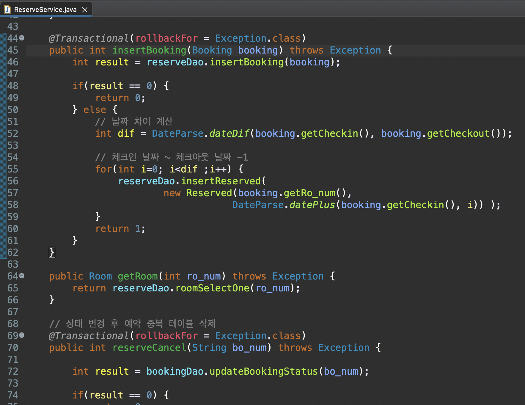 ์ด๋ ๊ณง ํ๋์ ํธ๋์ญ์ ์ด ๋์ด ์คํ๋ง ํธ๋์ญ์ ์ ํตํด ๋ฌธ์ ๋ฐ์ ์ ๋กค๋ฐฑ ๋ฑ ํ์ฒ๋ฆฌ๊ฐ ๊ฐ๋ฅํ์ต๋๋ค.