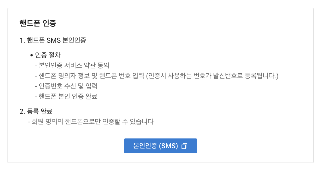 - 본인 전화번호 인증 후 등록