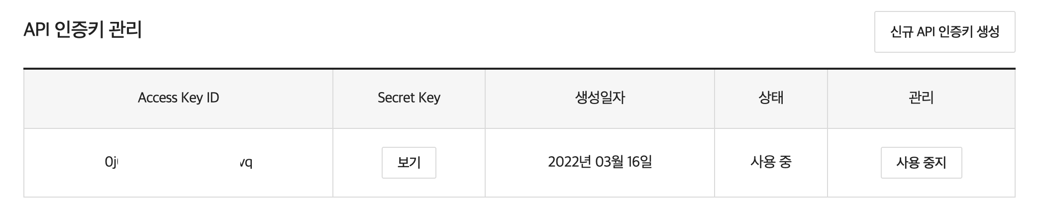 - 신규 API 인증키 생성을 클릭해 인증키를 생성해줍니다.