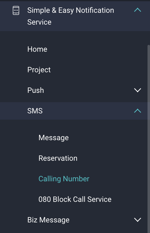 - 좌측 사이드바 -> SENS -> SMS -> Calling Number