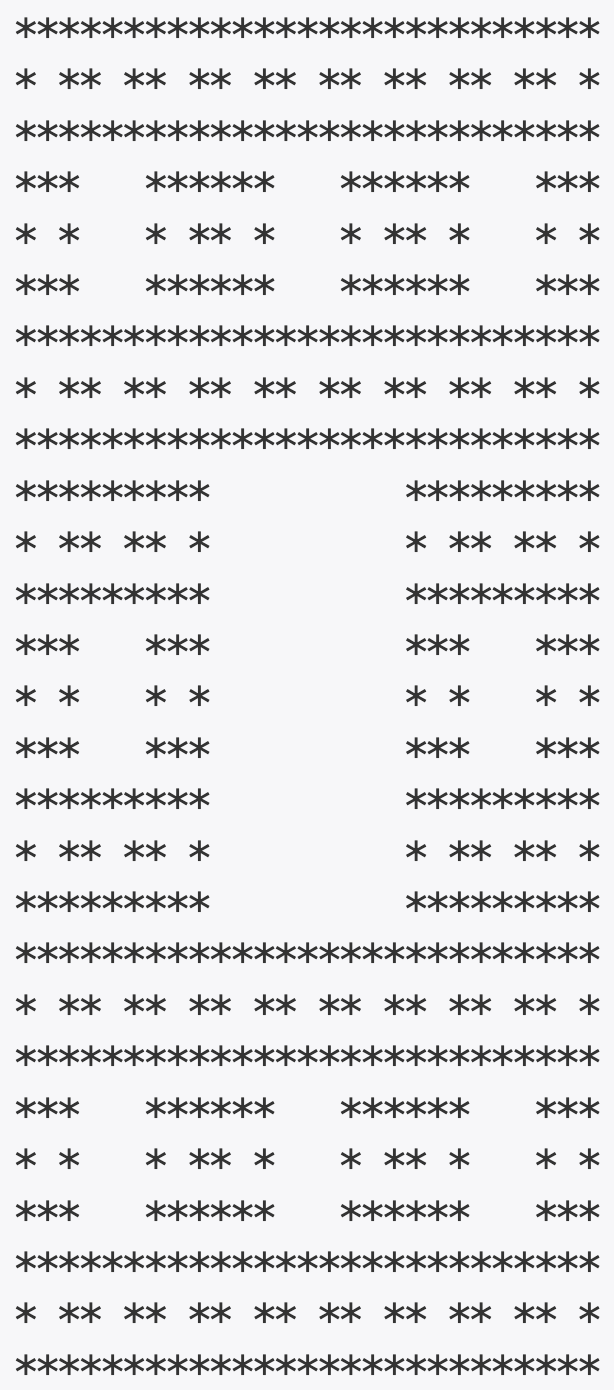 N이 3보다 클 경우, 크기 N의 패턴은 공백으로 채워진 가운데의 (N/3)×(N/3) 정사각형을 크기 N/3의 패턴으로 둘러싼 형태이다. 예를 들어 크기 27의 패턴은 예제 출력 1과 같다.