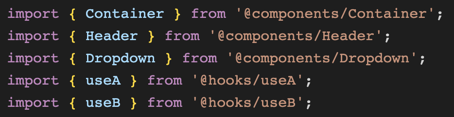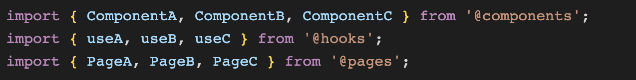 import { ComponentA, ComponentB, ComponentC, ComponentD } from '@components'