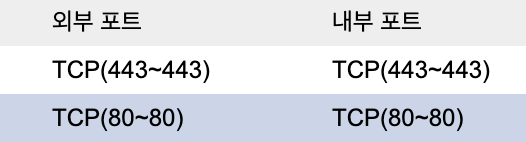 443 포트는 https 접속 시 사용되고 80 포트로는 Certbot 인증을 진행합니다.