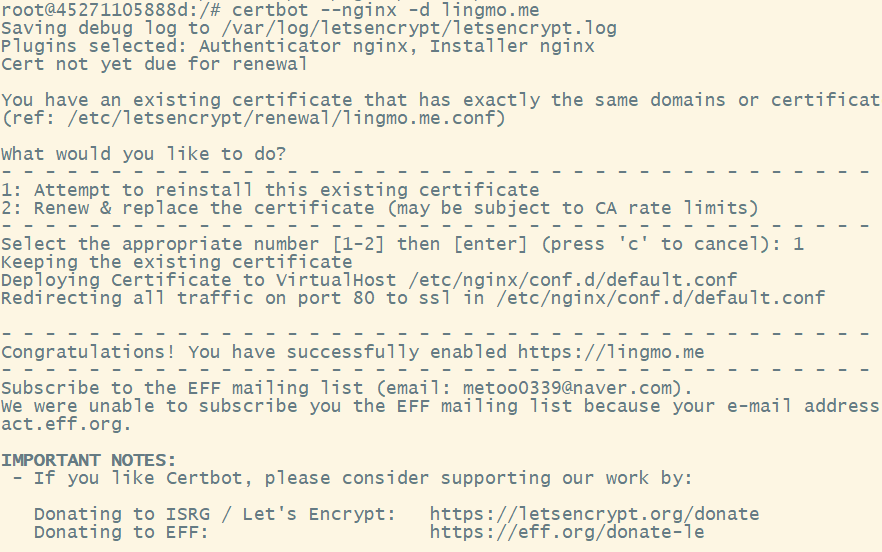 $ certbot —-nginx -d 도메인