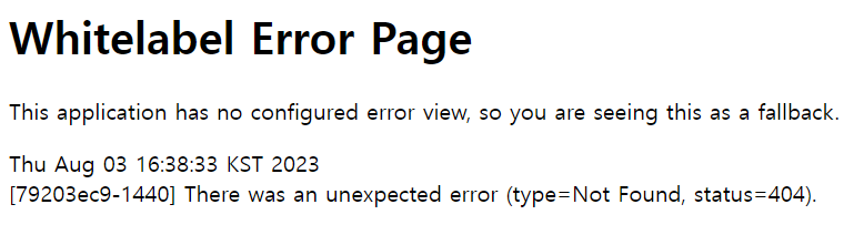 스프링 부트 서버에서 Whitelabel Error Page 에러를 뱉어내고 화면에 표시된 겁니다.