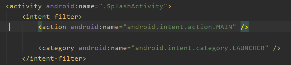 매니패스트에는 스플래쉬 액티비티를 인텐트 필터로 만들어주었다.