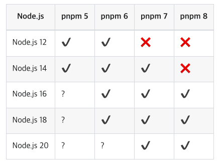 node ๋ฒ์ ์ ๋ฐ๋ฅธ pnpm ์ค์น ๊ฐ๋ฅ ๋ฒ์ ์ ์์ ๊ฐ์ต๋๋ค.