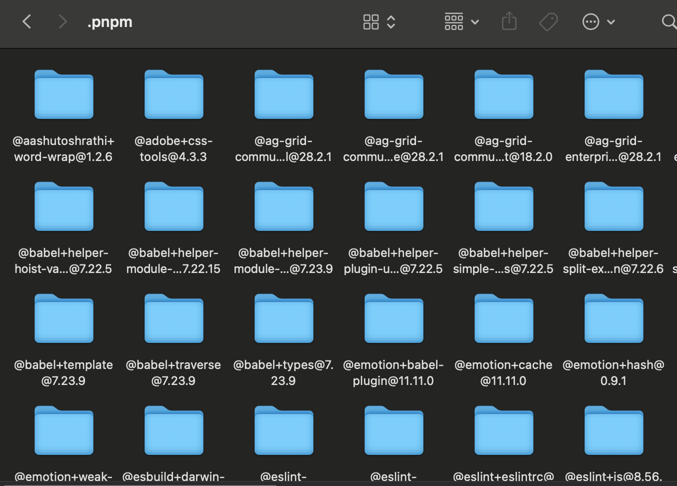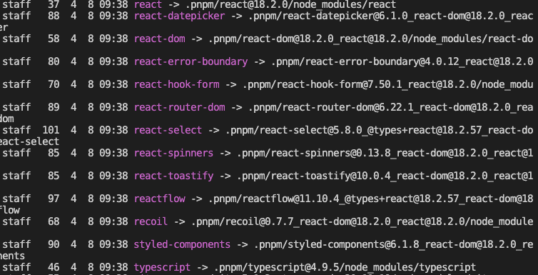 node_modules/.pnpm ์๋ ์ ์ญ์ผ๋ก ํ๋ ๋งํฌ๊ฐ ๊ฑธ๋ฆฐ 1 depth ํํ ๋ชจ๋ ์์กด์ฑ๋ค์ด ์กด์ฌํ๊ณ ,