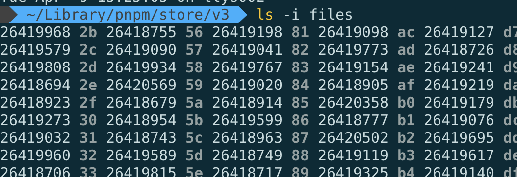 pnpm install ์ ์ ์ญ store์ ํจํค์ง๋ค์ด ํด์ ๊ฐ์ผ๋ก ์ ์ฅ๋ ๊ฒ์ ํ์ธํ ์ ์์ต๋๋ค.