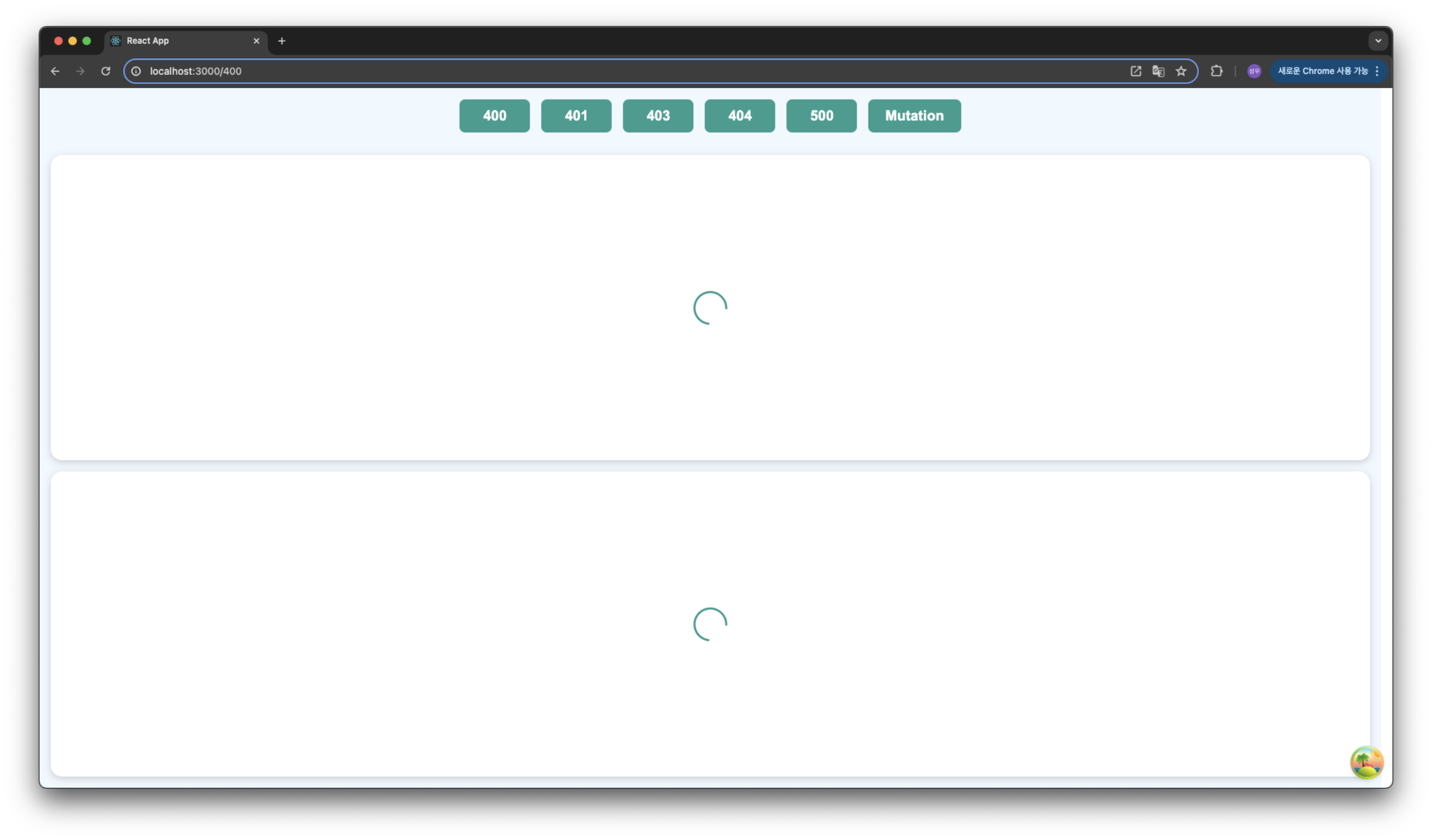 <ErrorBoundary FallbackComponent={<span>์๋ฌ ๋ฐ์</span>}> // ์๋ฌ์ํ ๋ถ๋ฆฌ