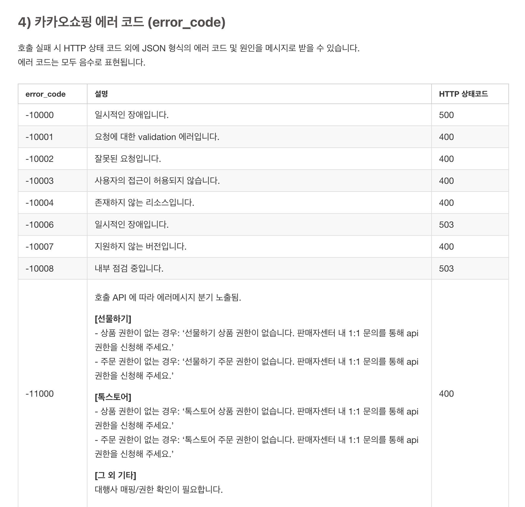 ์ข์ ์์๋ก ์นด์นด์ค ์ผํ์์ ๊ณต๊ฐํ ์๋ฌ ๋ฐ์ดํฐ ๊ตฌ์กฐ์ ํฉ์๋ ์๋ฌ ์ฝ๋๋ก ์ฐธ๊ณ ํ ์ ์์ต๋๋ค.