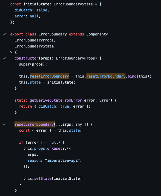 resetErrorBoundary๋ ErrorBoundary์์ ๋์ฒด UI๋ฅผ ๋์์ฃผ๋ ์ํ๋ฅผ ์ด๊ธฐํํ๋ ํจ์์