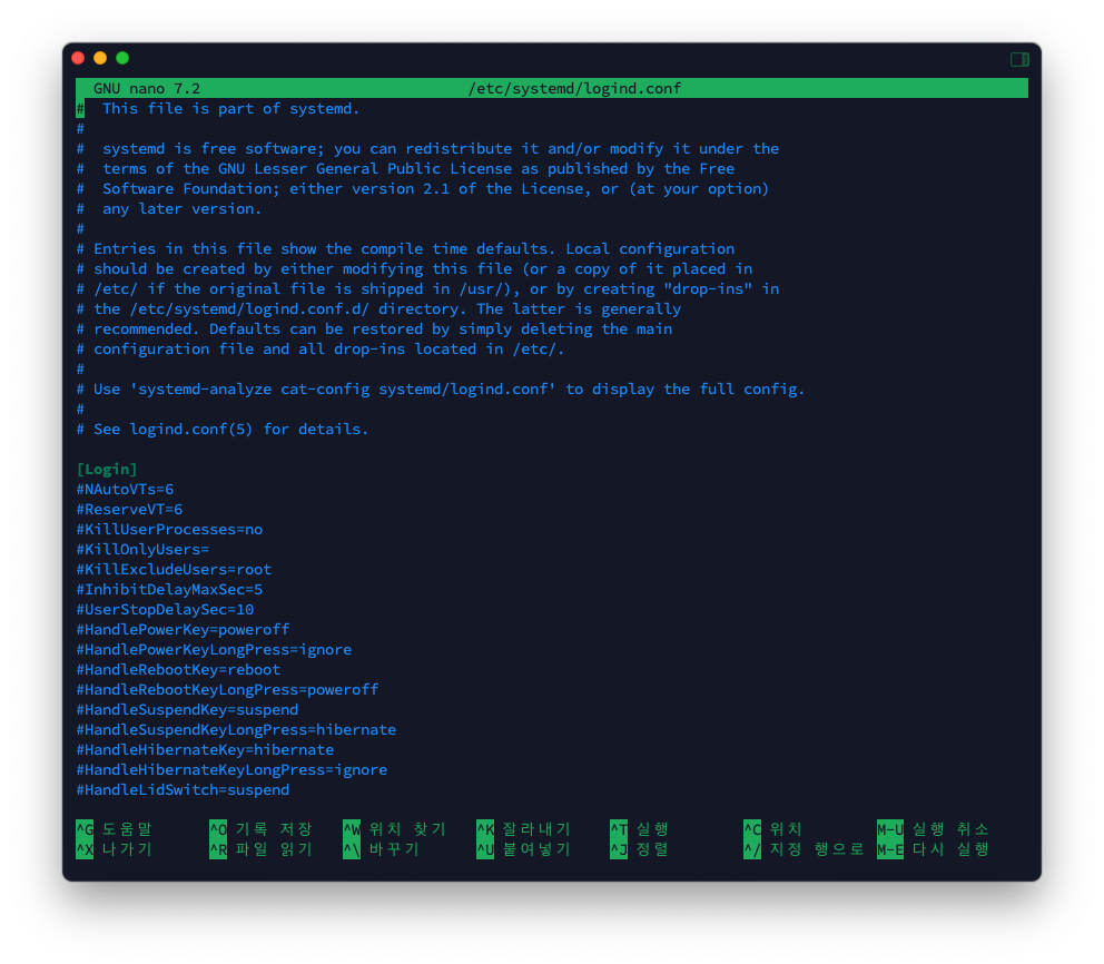 ๐ ์๋ํฐ๋ก logind.conf ํ์ผ ์ด๊ธฐ