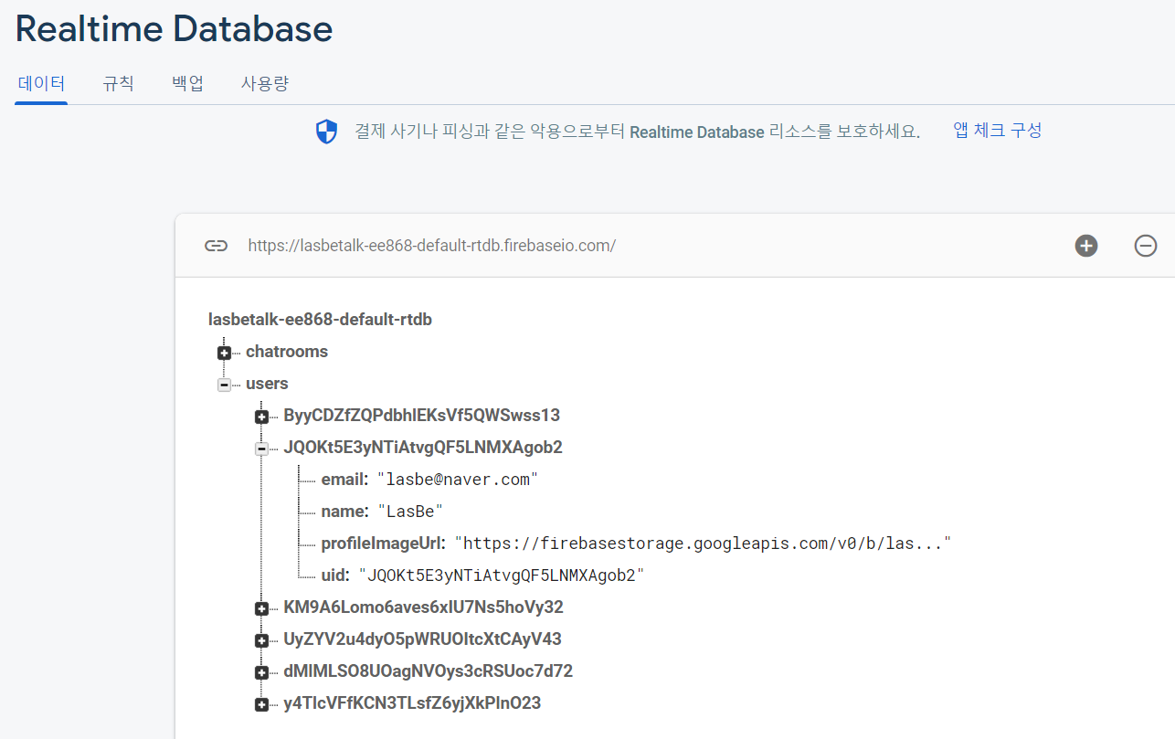 그다음 데이터 클래스를 선언하고 유저의 모든 정보를 담아준 뒤 데이터베이스에 올려준다.