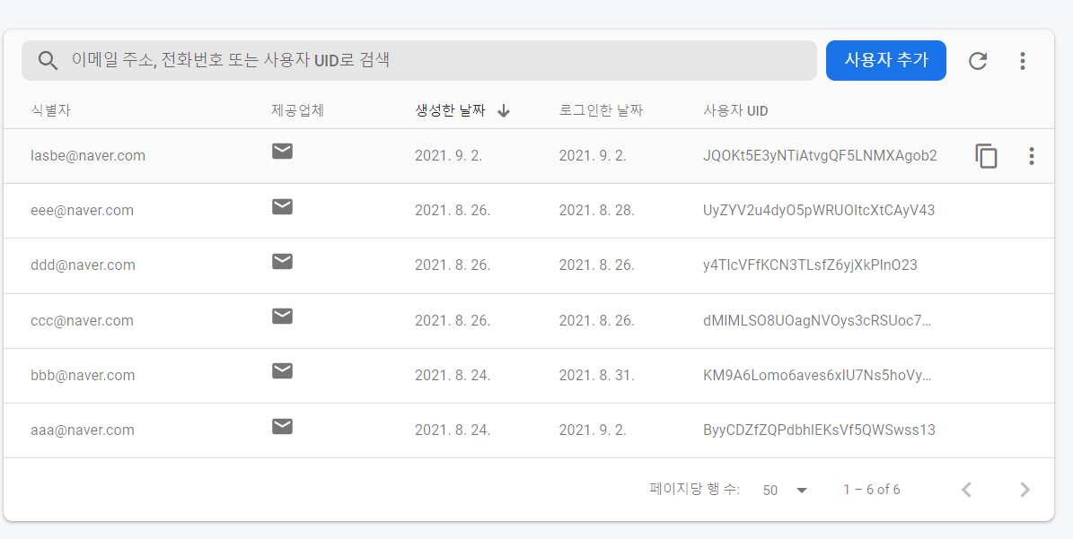 auth.createUserWithEmailAndPassword을 이용해 Firebase Auth에 이메일과 패스워드를 등록시킨다.