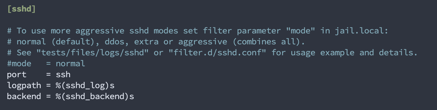 $ sudo cp /etc/fail2ban/jail.conf /etc/fail2ban/jail.local