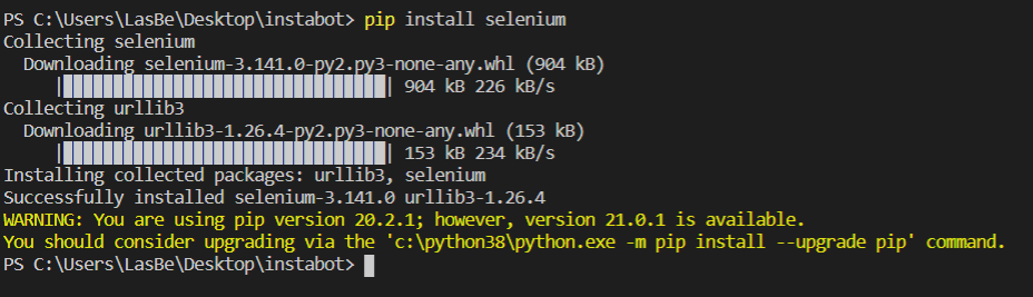 2021.04.06 - [Language/Python] - [파이썬/셀레니움] 인스타그램 봇 만들기 - 1일차 : 셀레니움 설치 및 기초