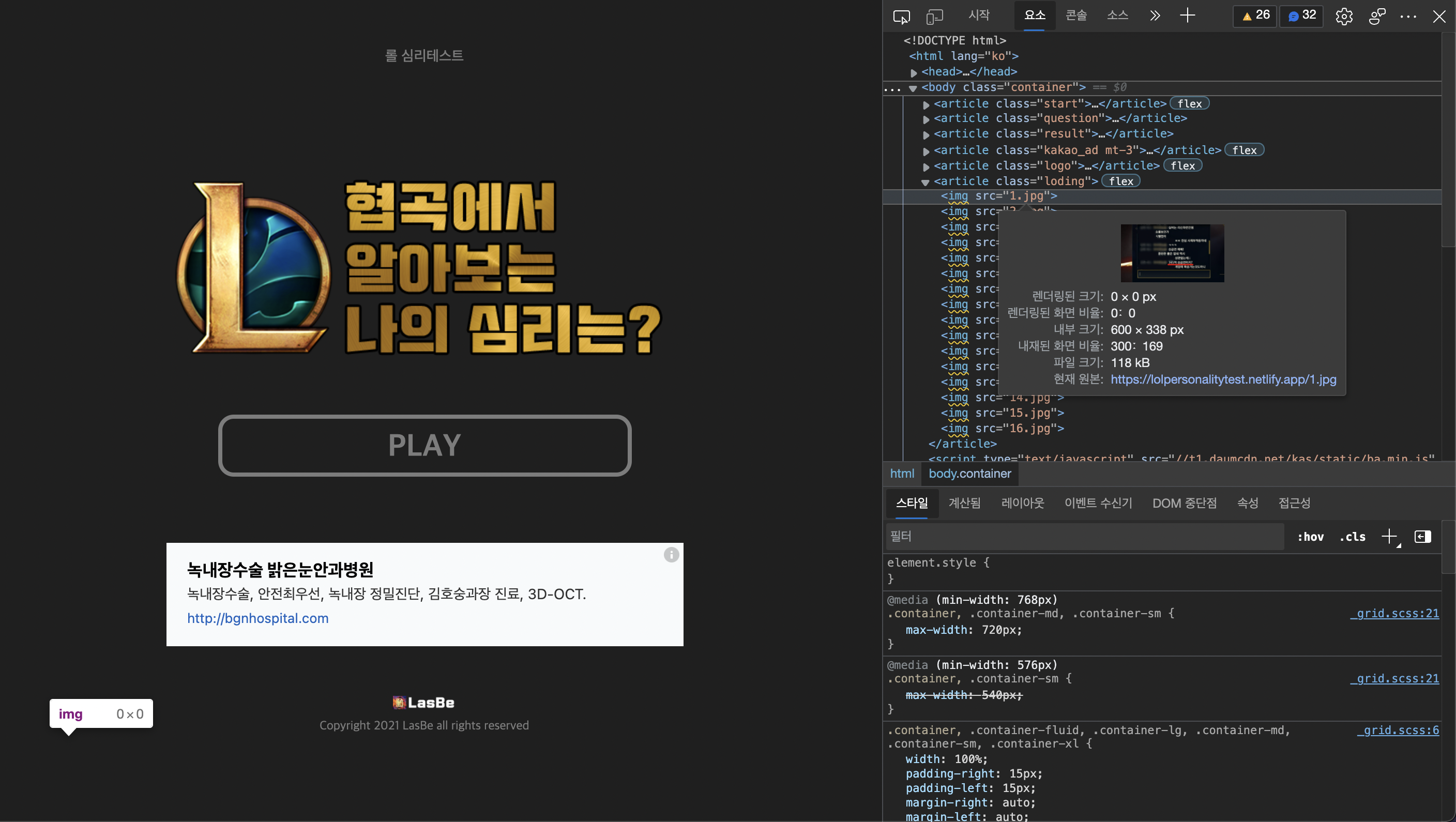 | [HTML, CSS, Javascript] 롤 심리테스트 만들기 (0) | 2021.09.23 |