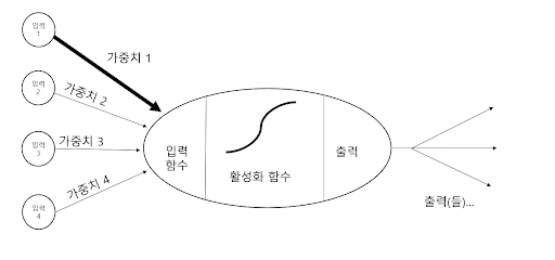 뉴런은 입력, 가중치, 활성화함수, 출력으로 구성된다.