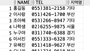 -전화번호의 지역번호를 이용해 거주지를 출력한다.