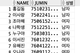 select name, jumin,