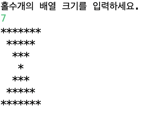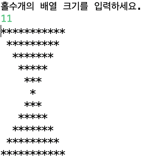 핵심은 입력 값에 나누기 2를 해준 값을 중심으로 left, right 값을 증감시킴으로써 모양을 그려나간다는 것이다.