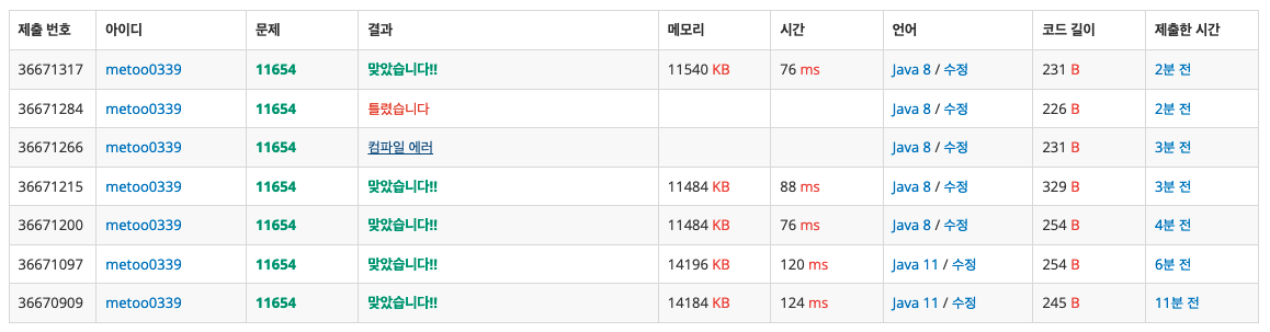 | 백준 알고리즘 11720번 문제풀이 - 자바(JAVA) (0) | 2021.12.26 |