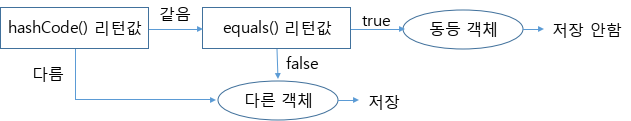 - 객체1.hashCode() == 객체2.hashCode() -> true