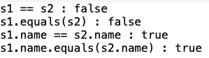 System.out.println("s1.name.equals(s2.name) : "+ s1.name.equals(s2.name));