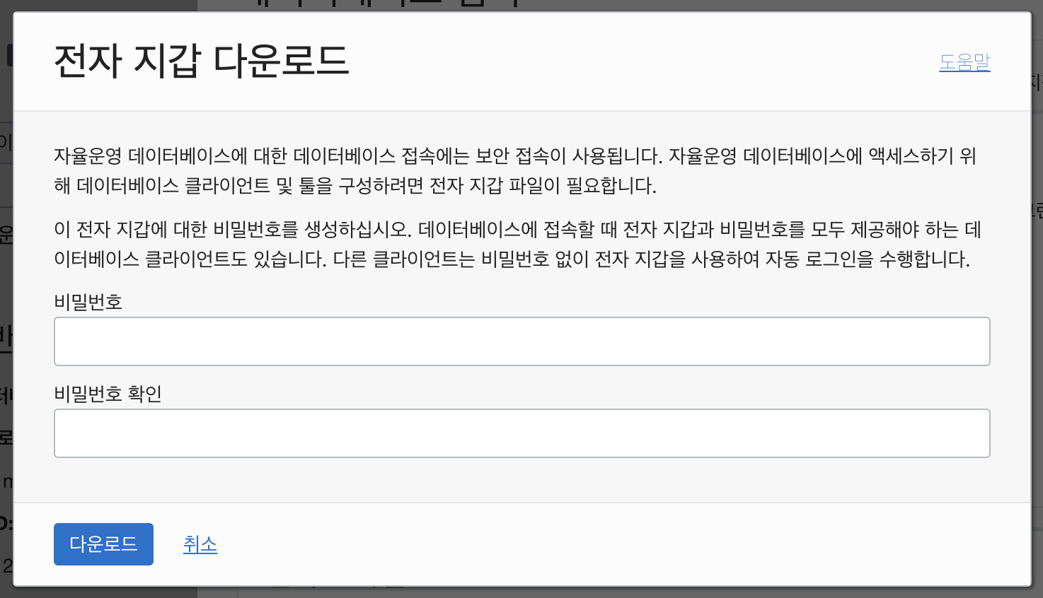지갑의 비밀번호를 설정해주고 다운로드 버튼을 누릅니다.