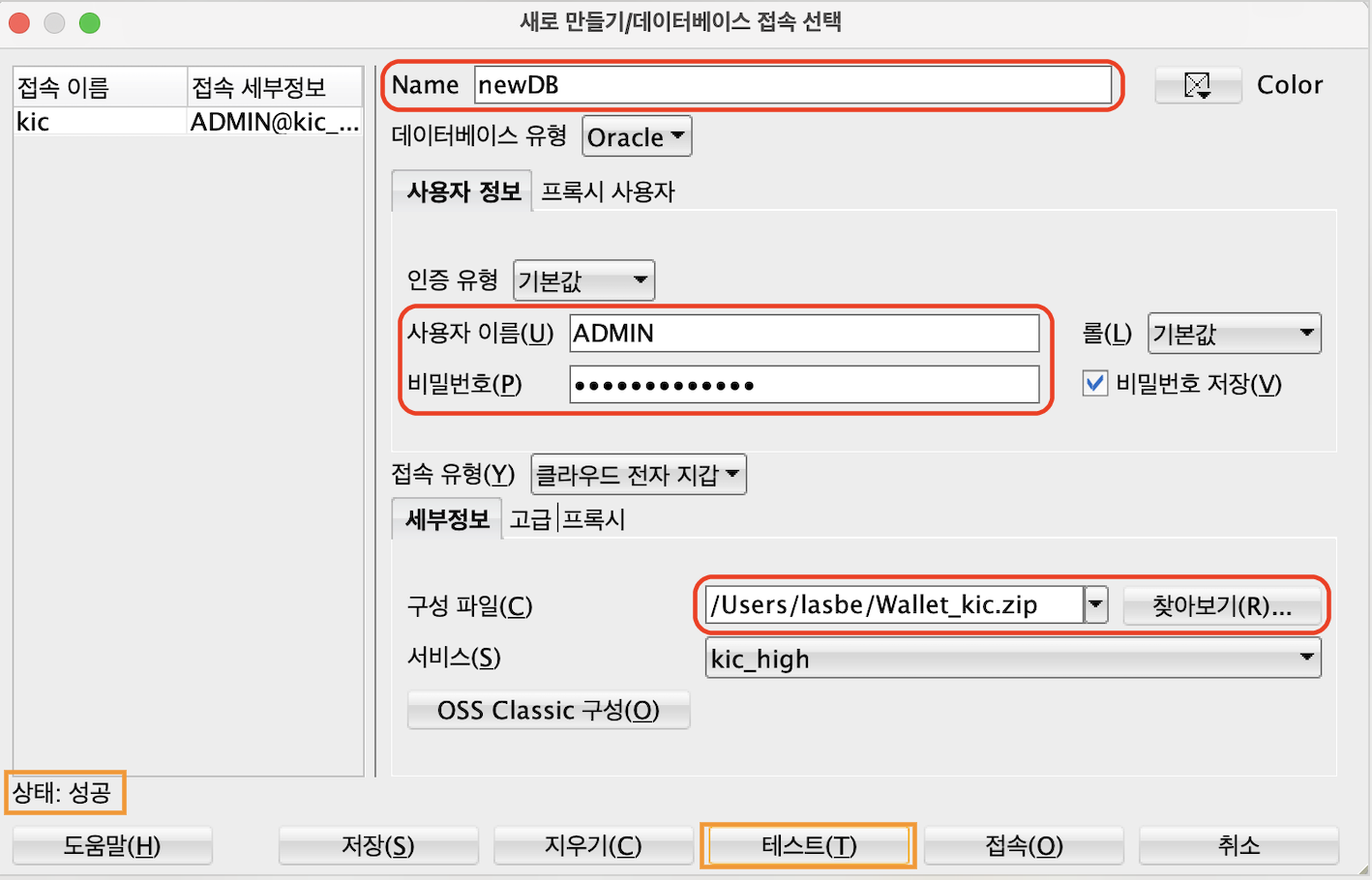전자 지갑 파일의 위치를 잘 기억해두고 SQL developer를 켜줍니다.
