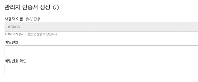 3. 관리자 접속 계정의 비밀번호를 정해줍니다.