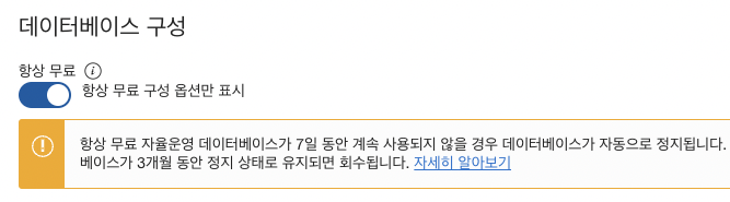 2. 데이터베이스 구성에서 항상 무료로 옵션을 변경합니다.