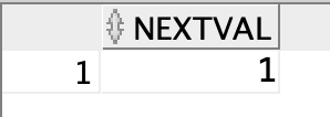 시퀸스를 생성한 뒤 처음 nextval을 실행한 결과는 다음과 같이 1을 출력합니다.