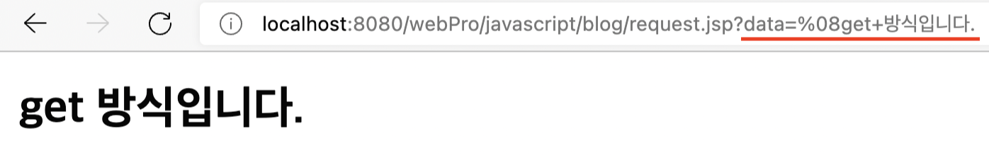 여기서 중요한 점은 get 방식이 주소에 데이터를 추가하여 전달한다는 점입니다.